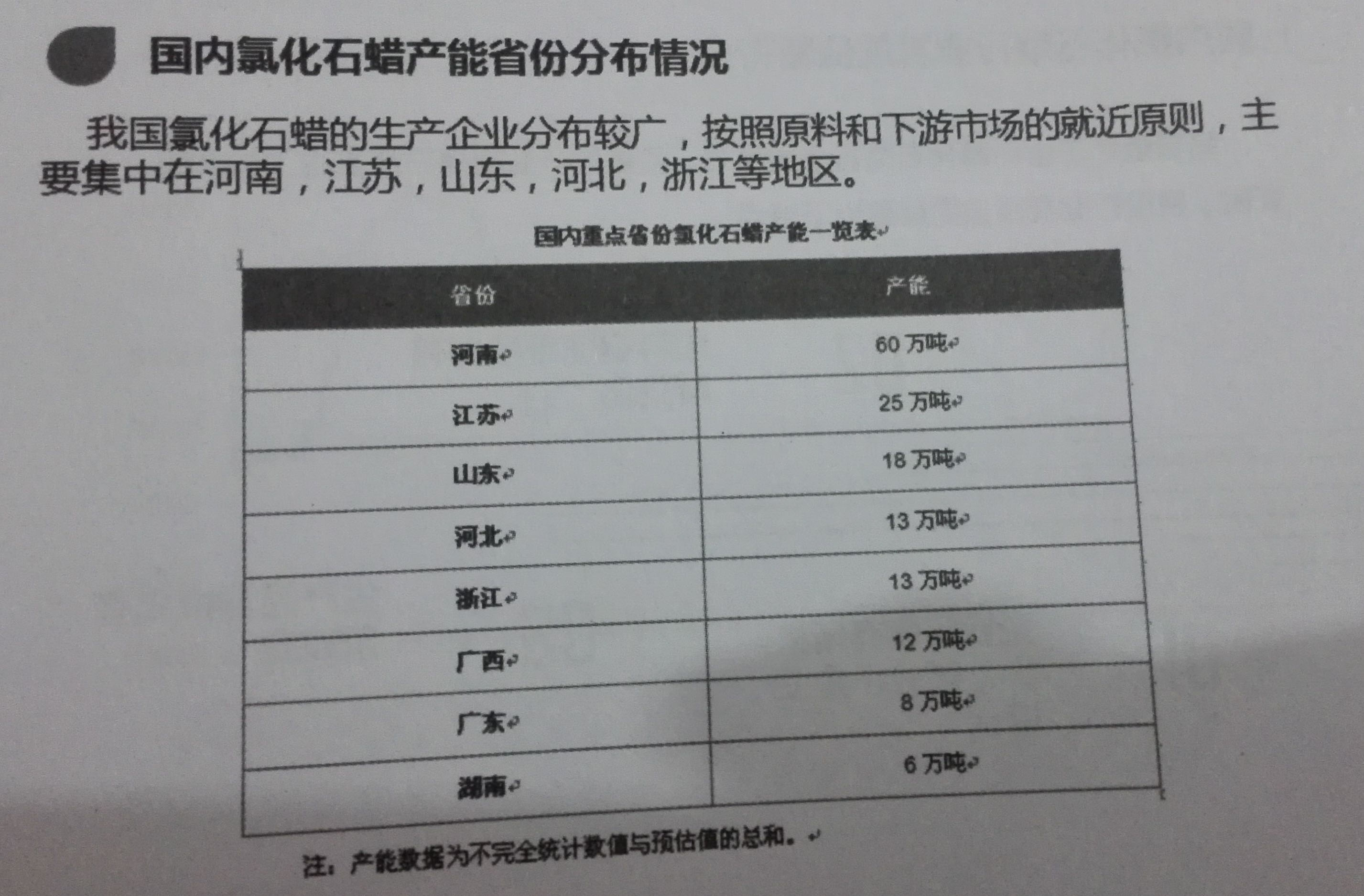 我国氯化石蜡的生产企业分布较广,按照原料和下游市场的就近原则,主要集中在河南,江苏,山东,河北,浙江等区域。