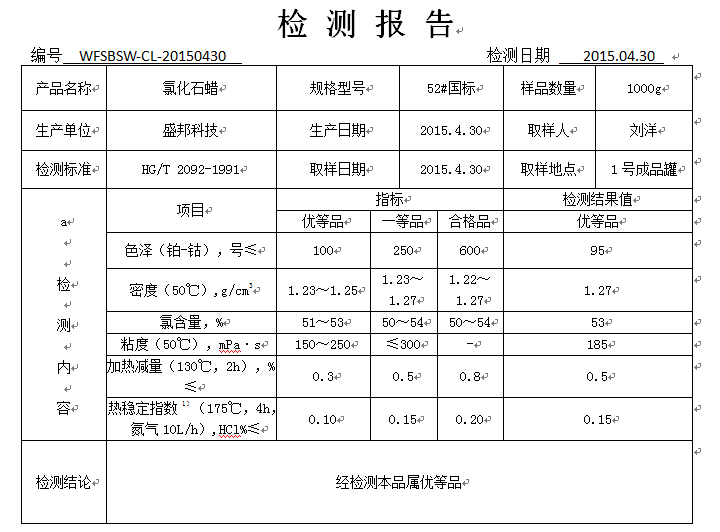 氯化石蜡52#是性能优良的化工助剂,盛邦科技根据客户行业的不同,潜心研究各行业化学性质,按需定制,提供不同配方,不同标准的氯化石蜡52#,以保证客户产品与本产品具有良好的相容性,以达到优良的化学反应。